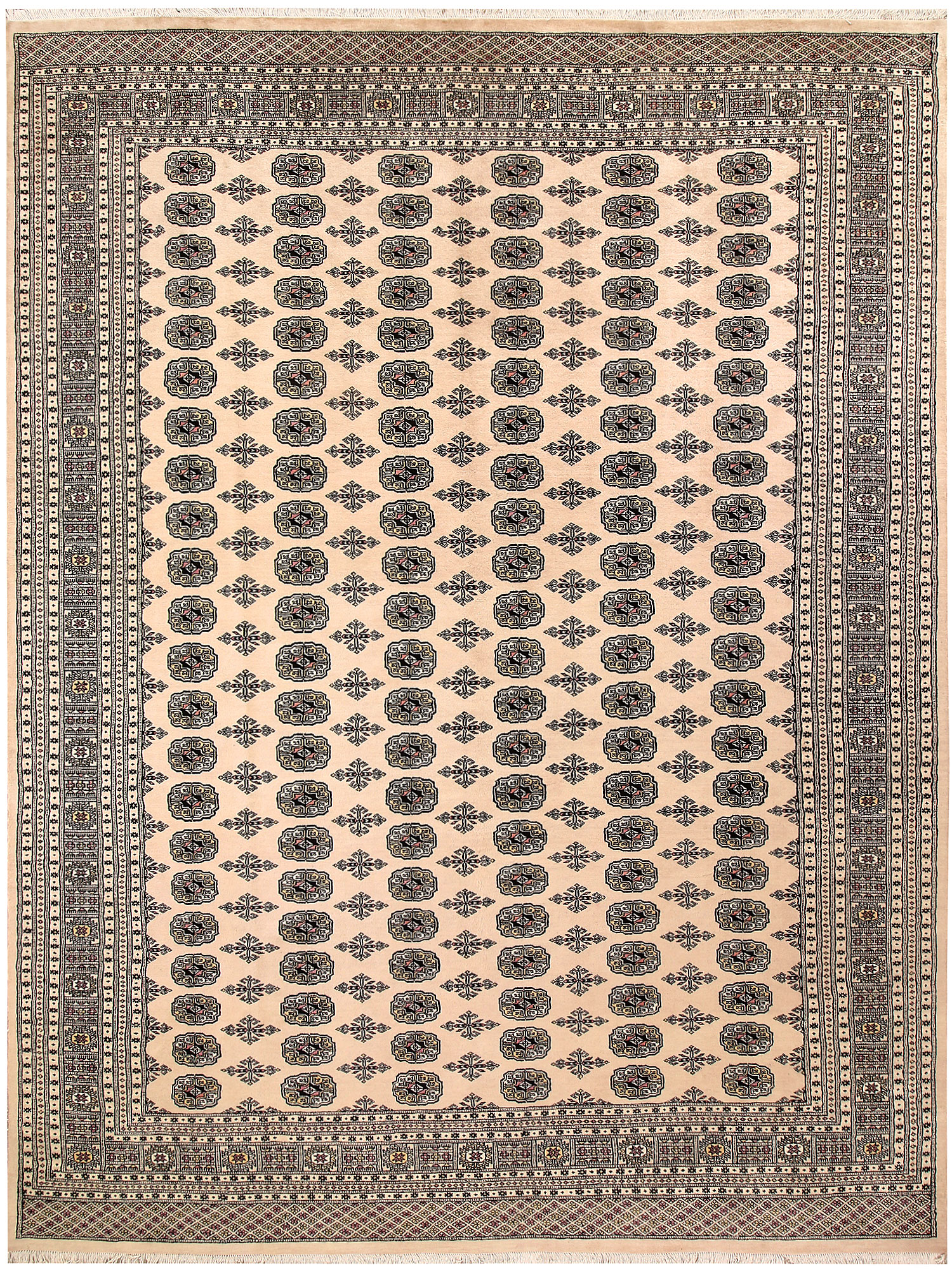 Filled with symbolic patterns and ancient designs, handmade Bisque Bokhara 9' x 12' Rectangle rugs can direct attention towards themselves like nothing else!