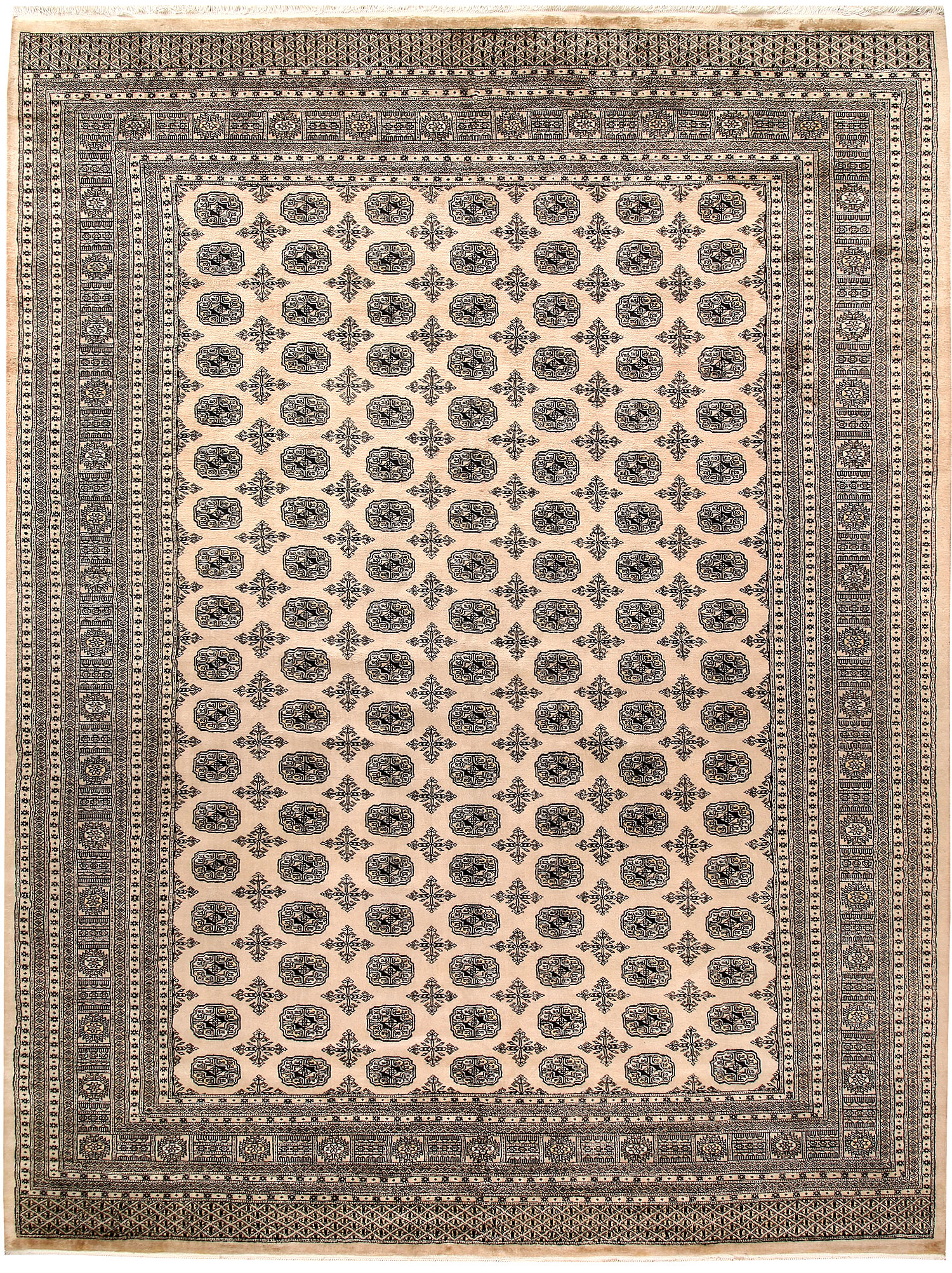 Filled with symbolic patterns and ancient designs, handmade Bisque Bokhara 9' x 12' Rectangle rugs can direct attention towards themselves like nothing else!