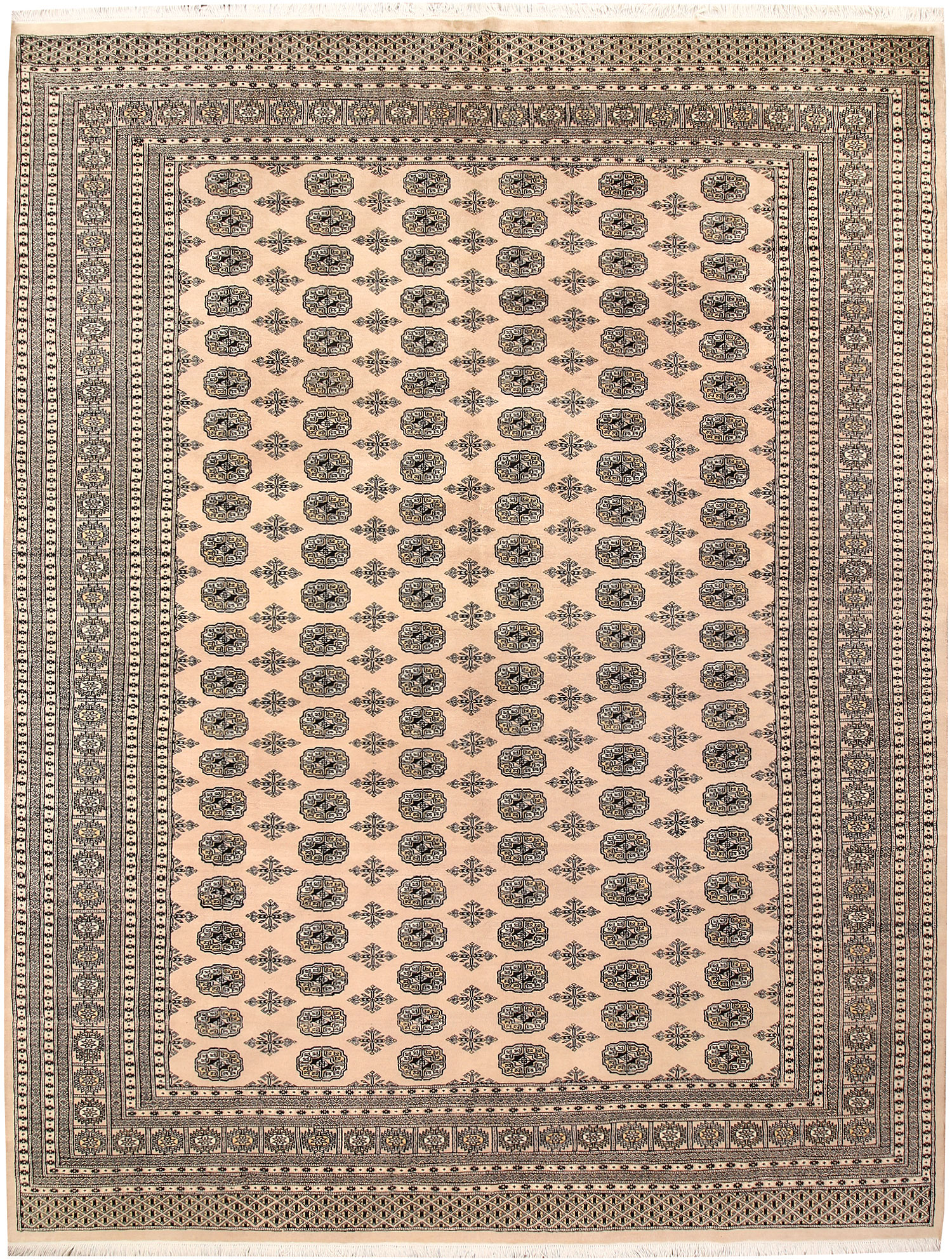 Filled with symbolic patterns and ancient designs, handmade Bisque Bokhara 9' x 12' Rectangle rugs can direct attention towards themselves like nothing else!
