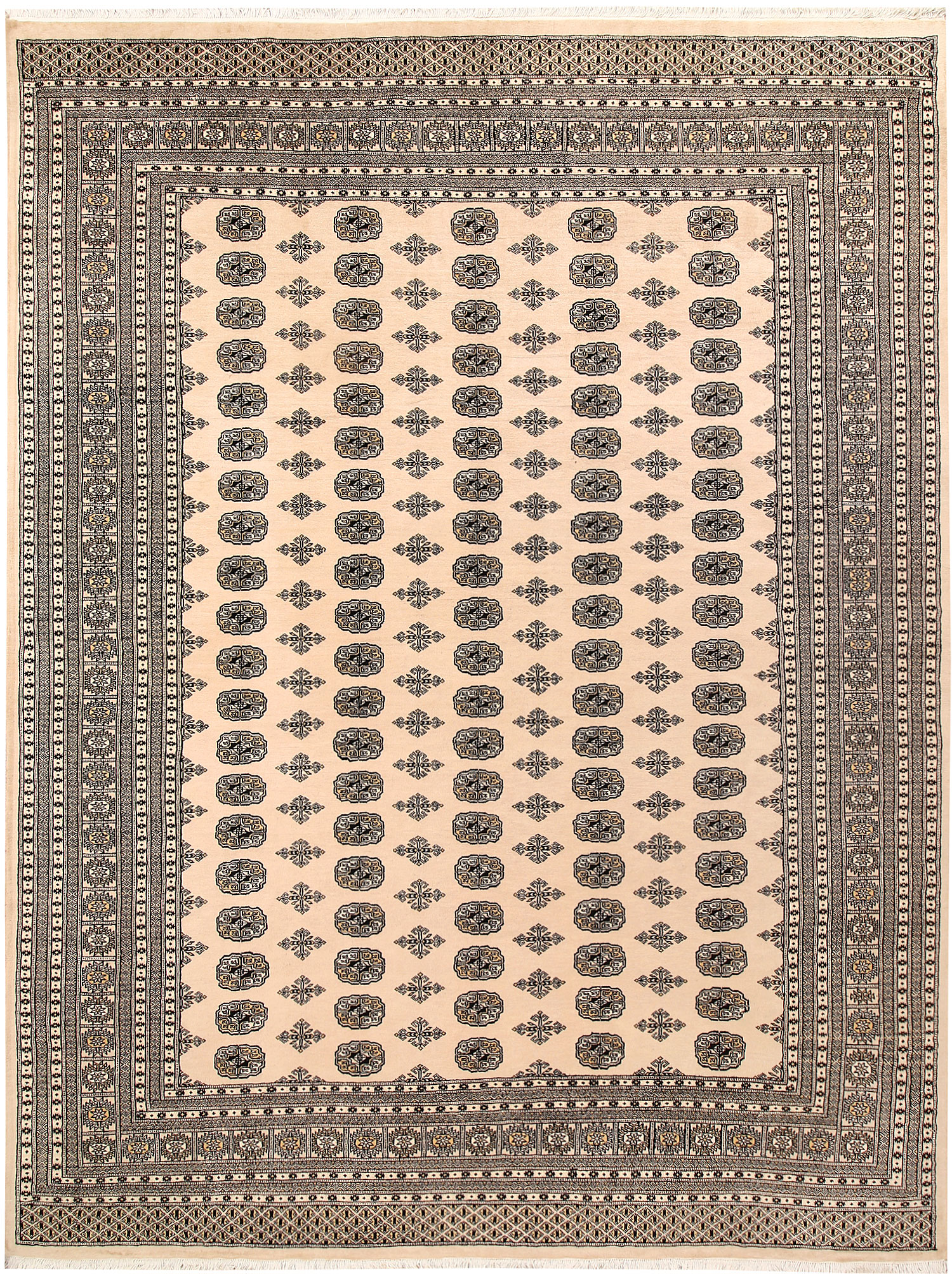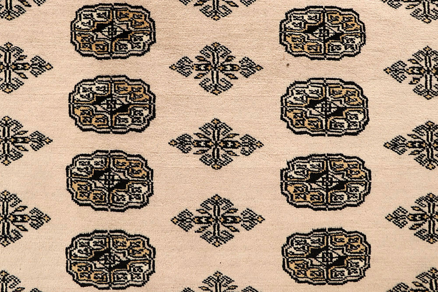 Filled with symbolic patterns and ancient designs, handmade Blanched Almond Bokhara 9' x 12' Rectangle rugs can direct attention towards themselves like nothing else!