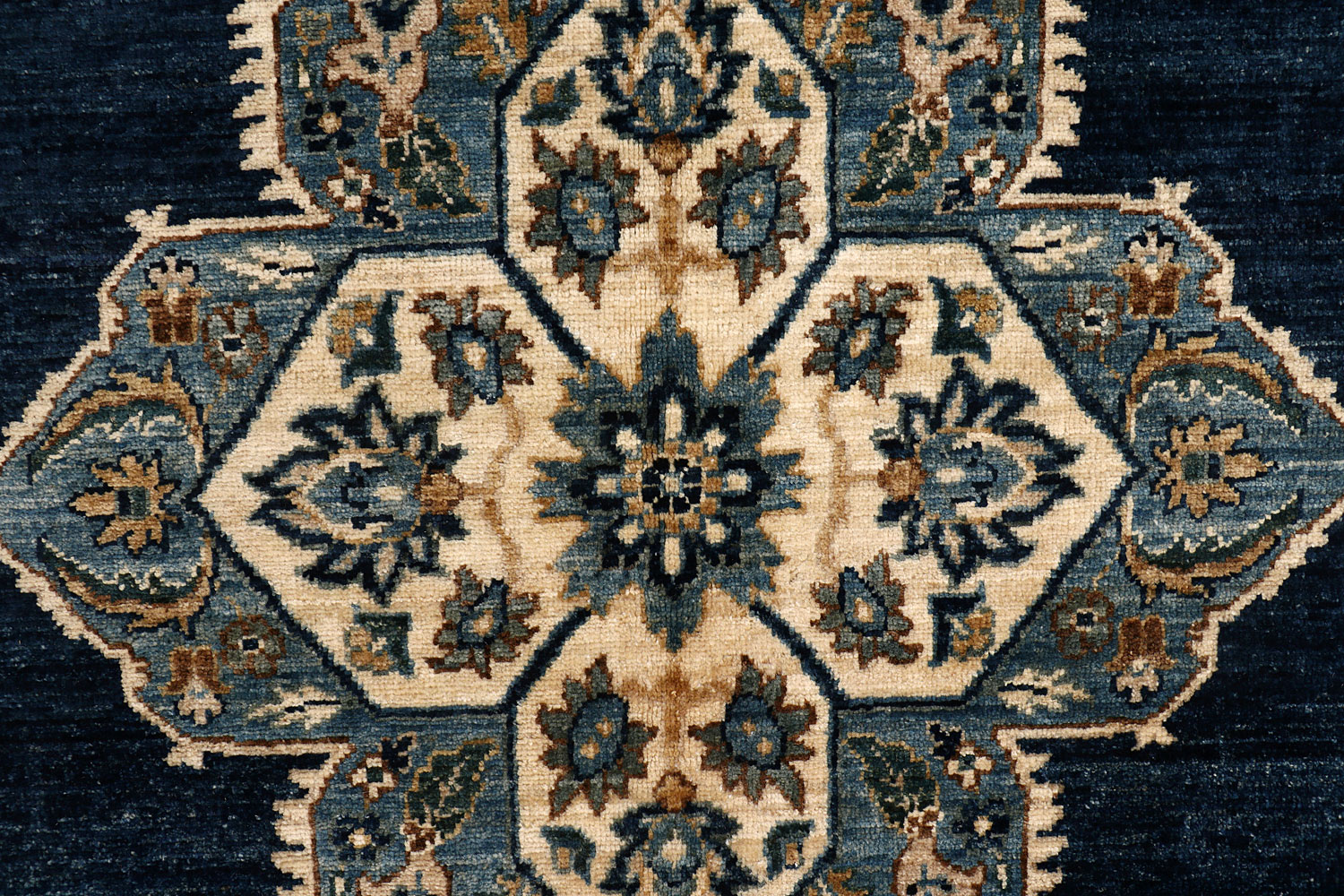 No need to travel to Afghanistan or Pakistan to buy an original handmade Ziegler rug! At our online store, you can order from our collection of exquisitely handwoven online Midnight Blue 5' x 6' 6" Ziegler rugs on sale and have them delivered anywhere in the world for free. And that too without compromising on quality.