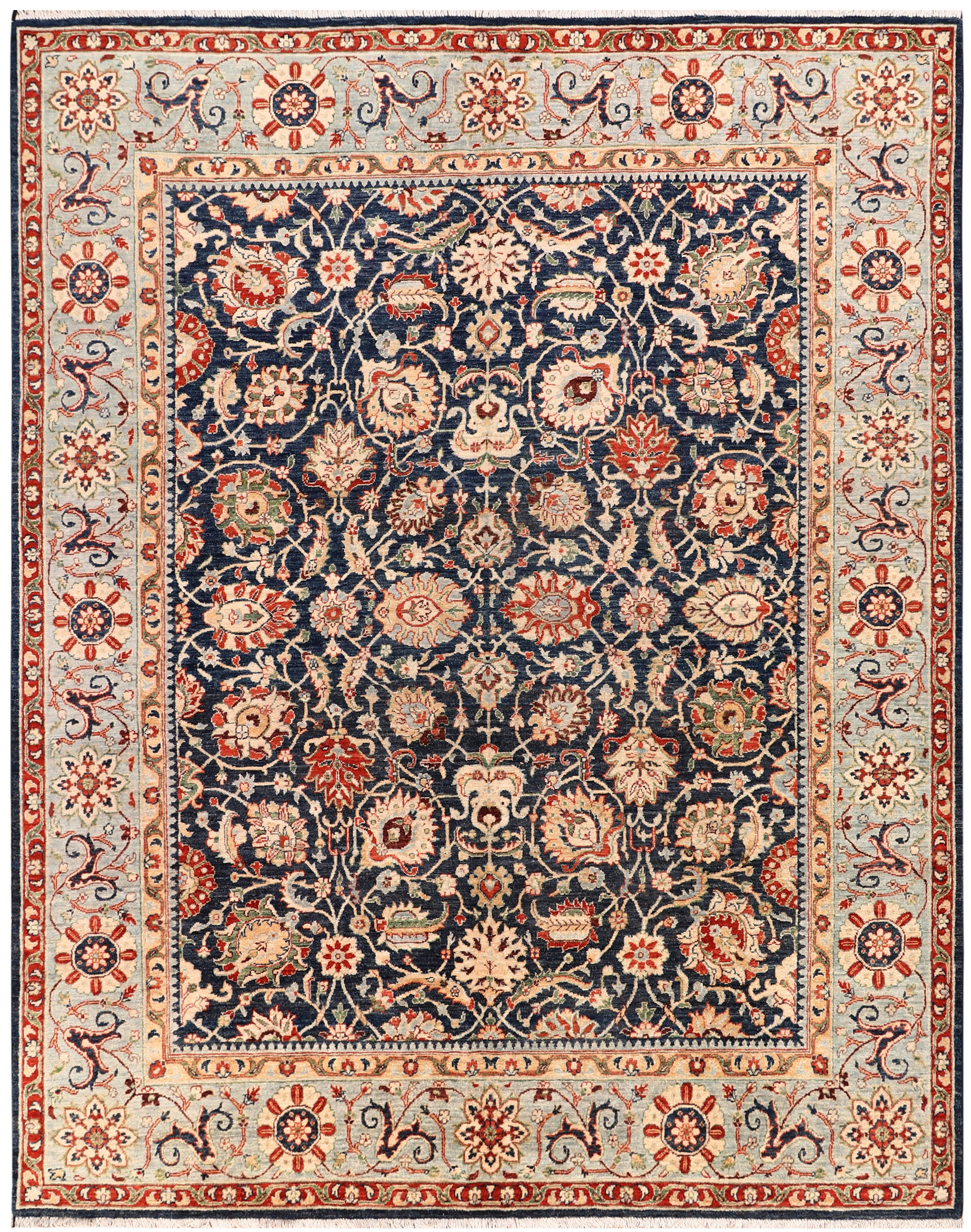 No need to travel to Afghanistan or Pakistan to buy an original handmade Ziegler rug! At our online store, you can order from our collection of exquisitely handwoven online Midnight Blue 8' x 10' Ziegler rugs on sale and have them delivered anywhere in the world for free. And that too without compromising on quality.