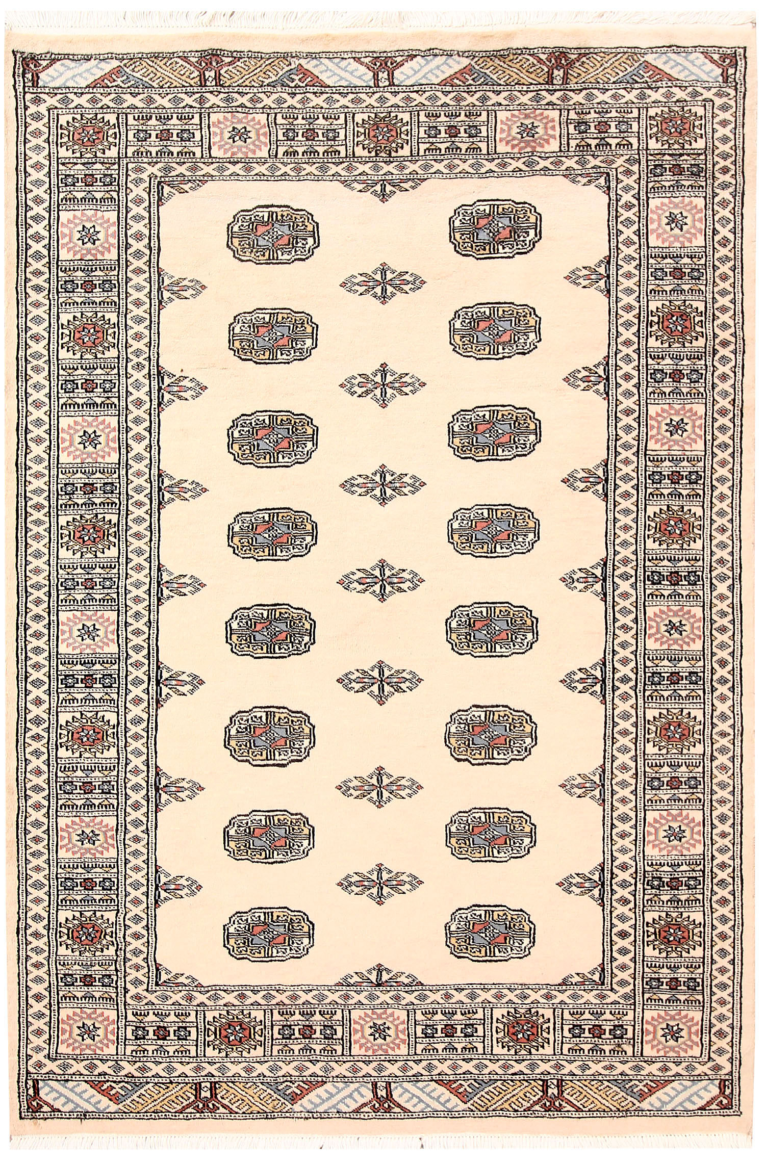 Filled with symbolic patterns and ancient designs, handmade Cornsilk Bokhara 4' x 6' Rectangle rugs can direct attention towards themselves like nothing else!