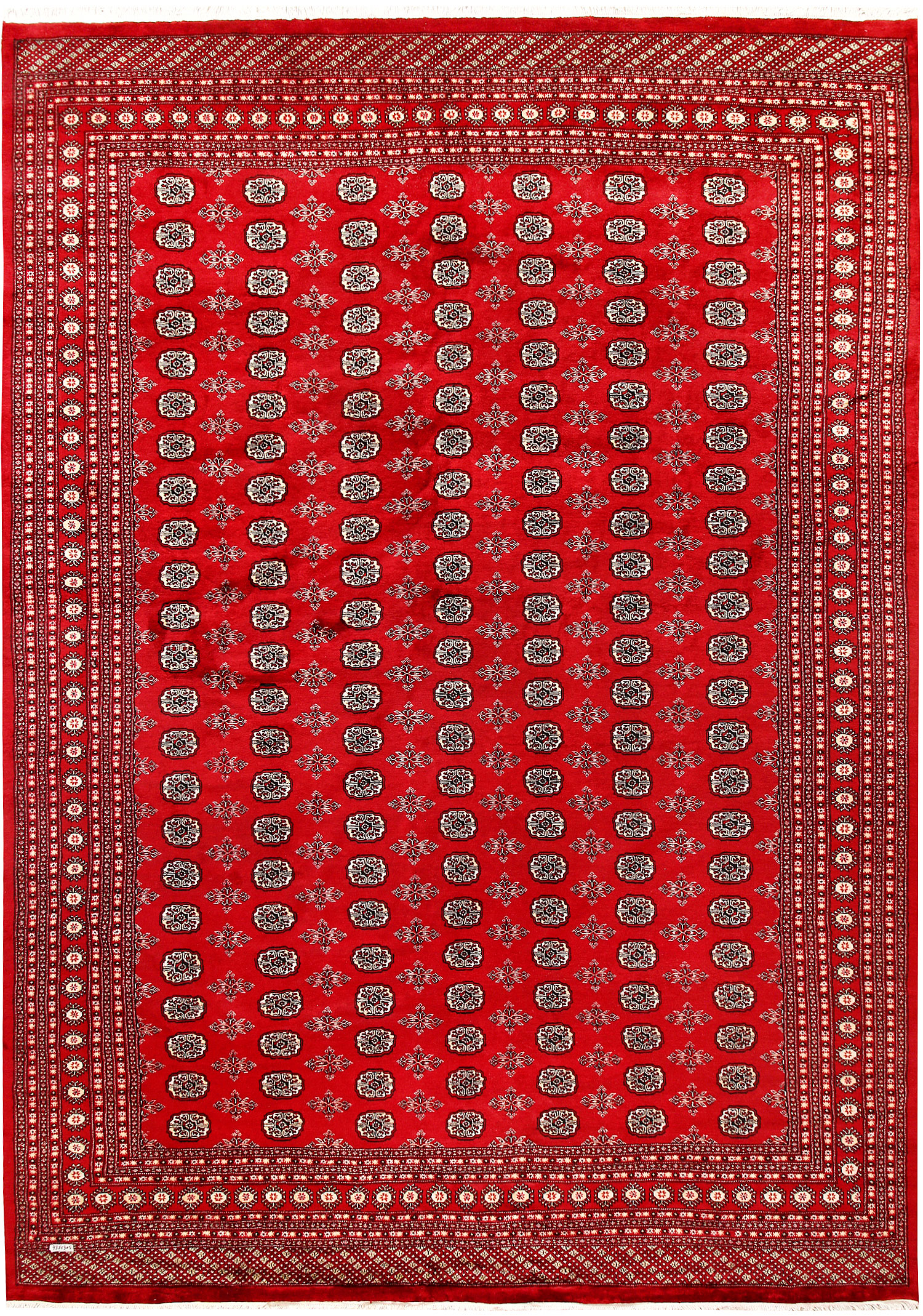 Yomud Bokharas are named after the Yomud tribe residing in Central Asia. They are known for their Caucasian features and Persian or Turkish knots. Many have diagonal rows in which a single diamond-or lozenge-shaped motif is repeated with various colors. The larger Yomut carpets are made entirely of wool or goat hair, generally in symmetrical knotting; in small pieces, for which asymmetrical knotting is used more frequently. 10' x 14' area rugs are the most popular among home owners.