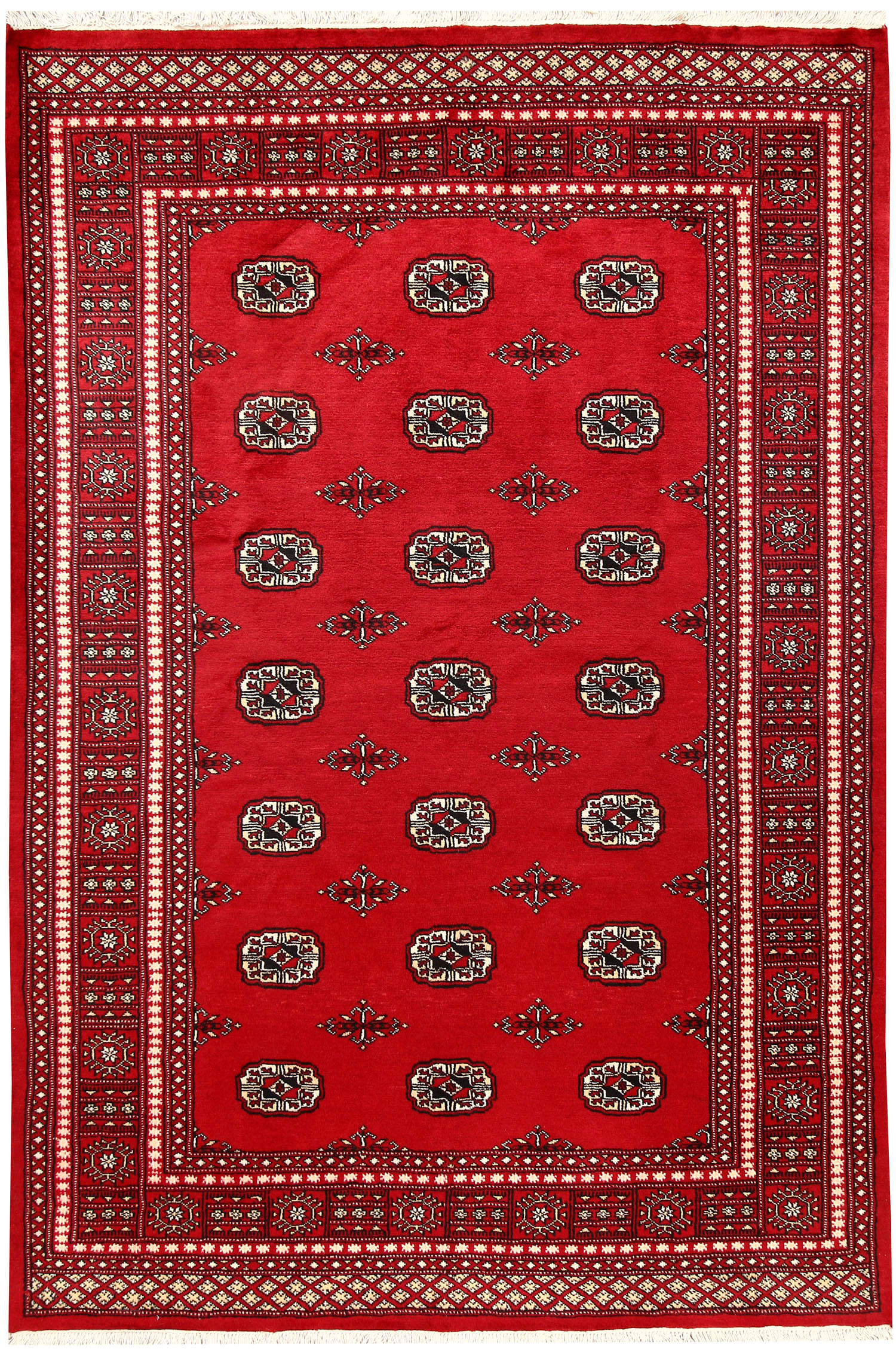 Salor Bokharas rugs are believed to be originally made by the Salor tribe who lived just north of the Northern Afghan border. These rugs are beautiful and known by red shades with a symmetrical row of octagons. Every octagon generally includes a smaller octagon or diamond within its border. The interior sides of each octagon generally feature one to three flowers.