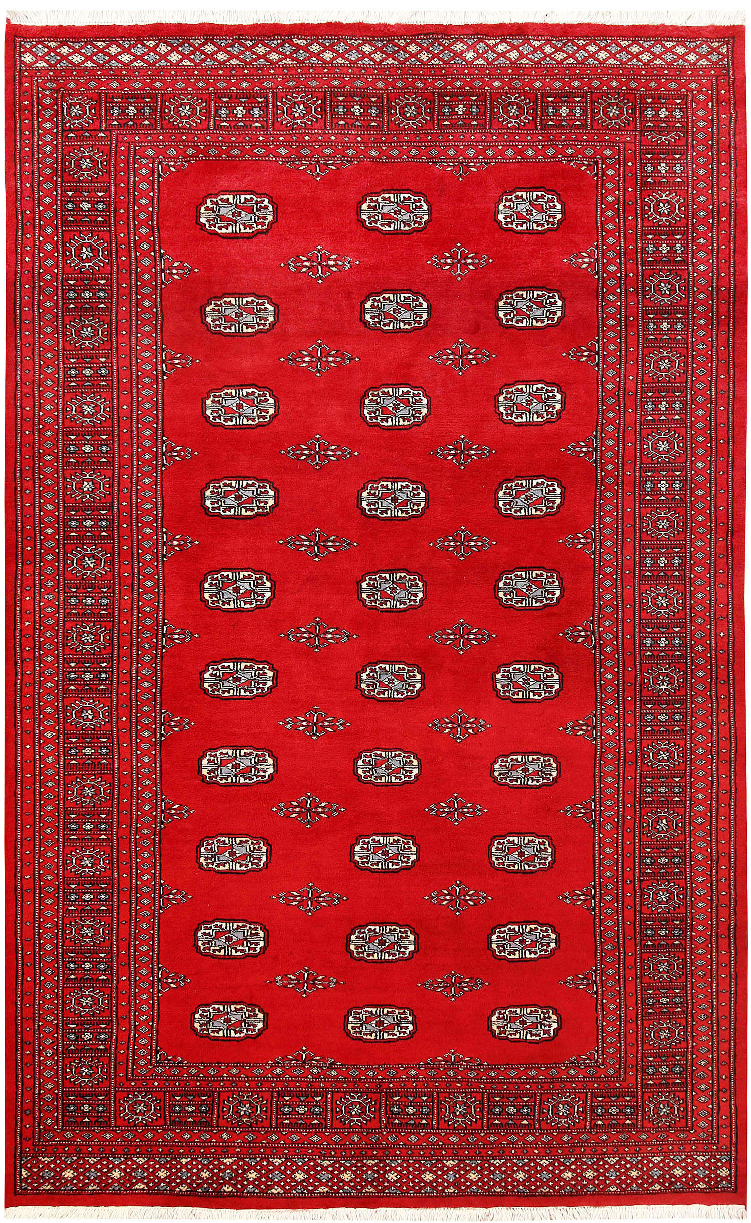 Salor Bokharas rugs are believed to be originally made by the Salor tribe who lived just north of the Northern Afghan border. These rugs are beautiful and known by red shades with a symmetrical row of octagons. Every octagon generally includes a smaller octagon or diamond within its border. The interior sides of each octagon generally feature one to three flowers.