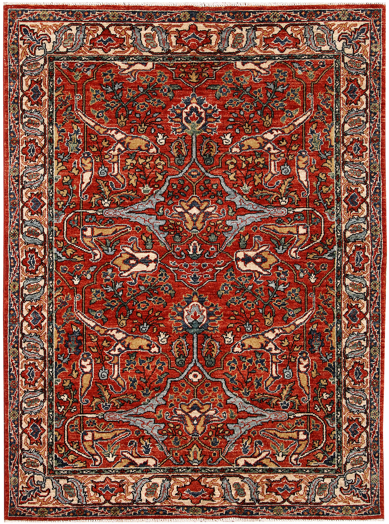 No need to travel to Afghanistan or Pakistan to buy an original handmade Ziegler rug! At our online store, you can order from our collection of exquisitely handwoven online Firebrick 4' 6" x 6' Ziegler rugs on sale and have them delivered anywhere in the world for free. And that too without compromising on quality.