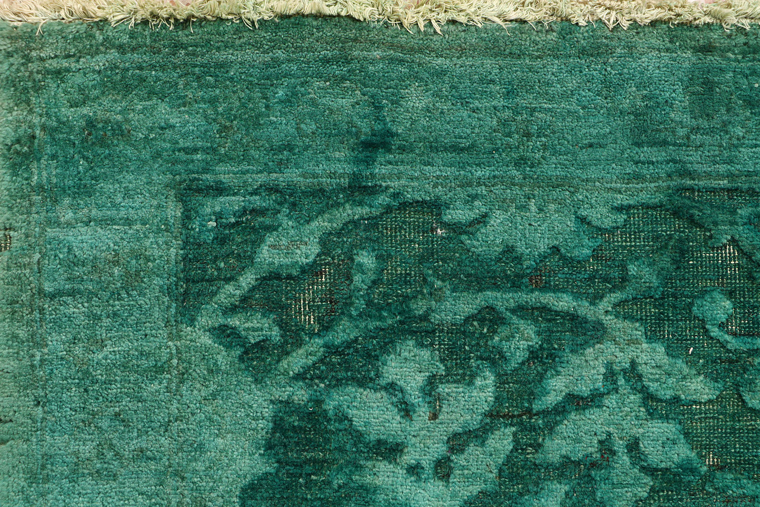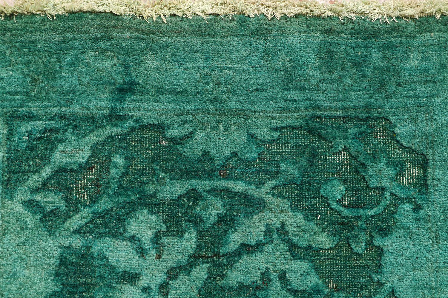 Not all rugs can be overdyed. Only wool hand-knotted rugs and vintage rugs are a perfect candidate for overdyeing. These rugs have been woven on a specially designed loom and each knot is tied by hand. Hand-tufted and synthetic rugs are not fit for the process. A hand-tufted rug won’t stay durable after the dying process as they’re made by punching a design into a stenciled canvas. A piece of fabric is then glued onto the back to hold the rug together while the fringes are either glued or sewn on. The rug is likely to fall apart during the de-saturation and dye retention process.