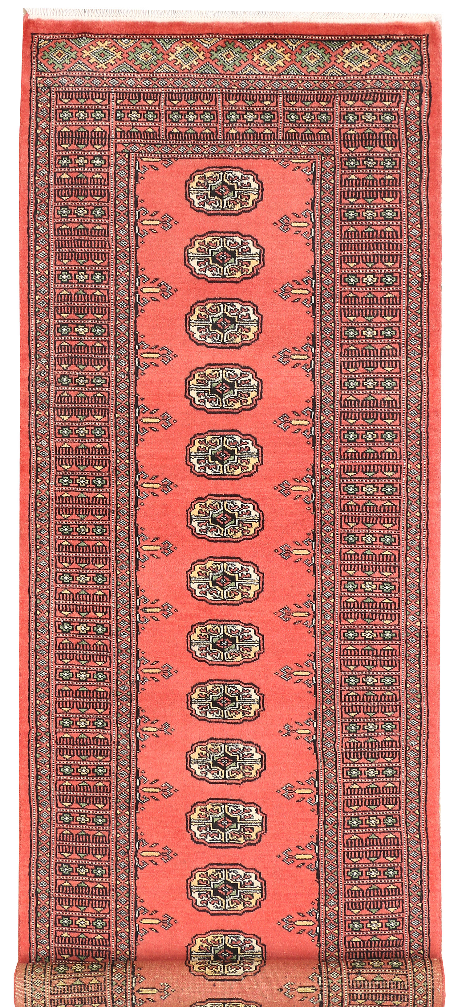 Filled with symbolic patterns and ancient designs, handmade Light Coral Bokhara 2' 6" x 8' Runner rugs can direct attention towards themselves like nothing else!