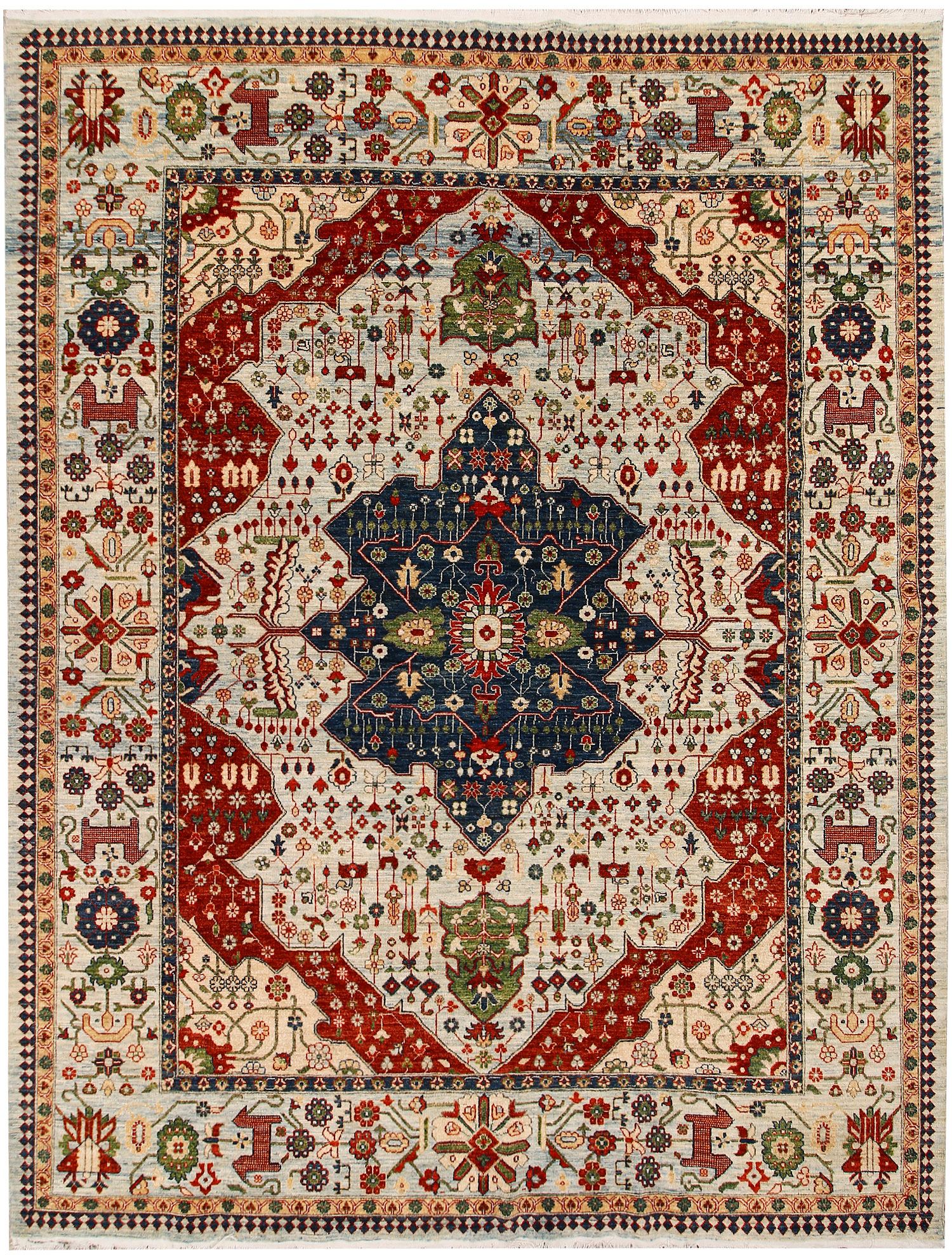 No need to travel to Afghanistan or Pakistan to buy an original handmade Ziegler rug! At our online store, you can order from our collection of exquisitely handwoven online Multi Colored 8' 6" x 11' Ziegler rugs on sale and have them delivered anywhere in the world for free. And that too without compromising on quality.