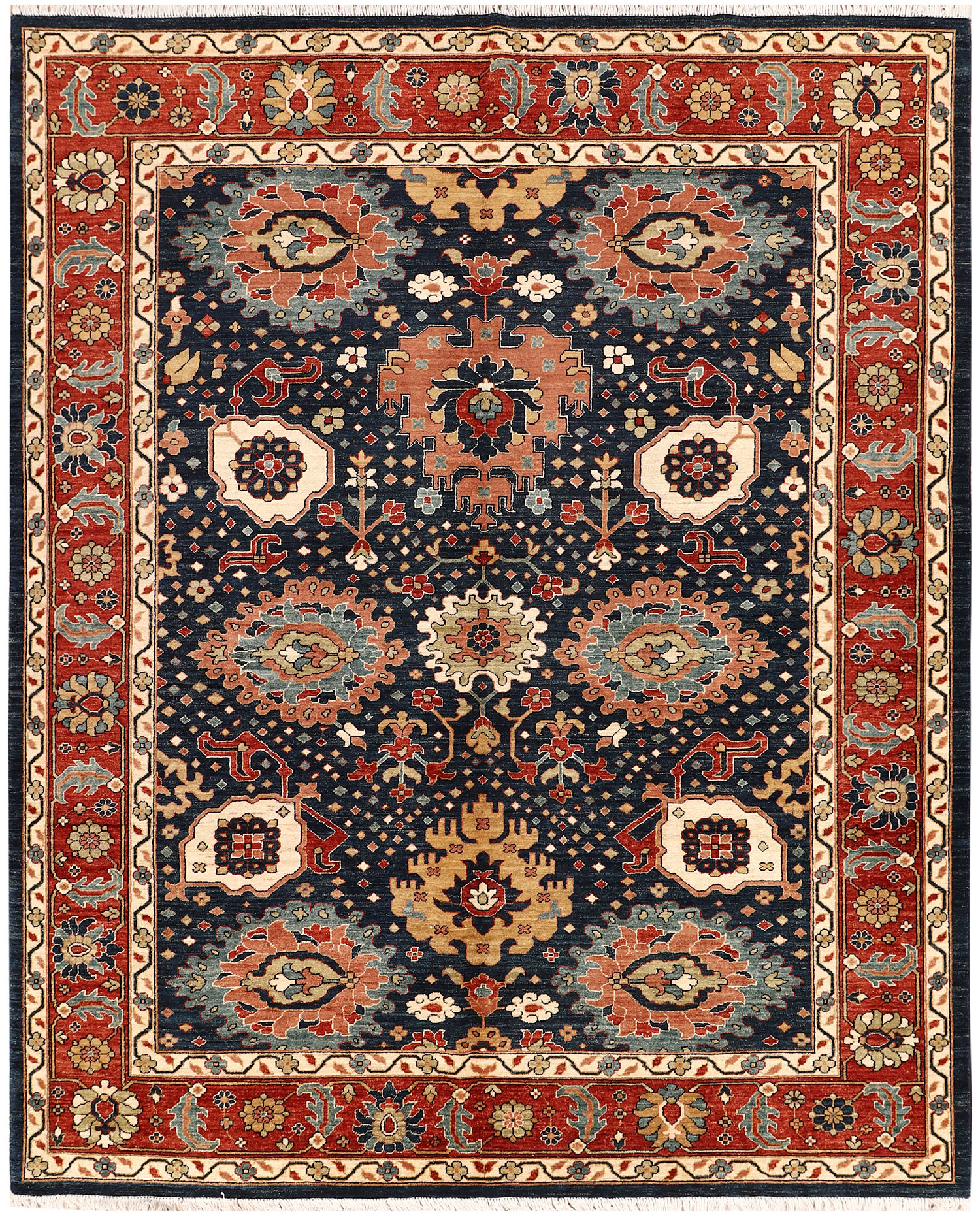 No need to travel to Afghanistan or Pakistan to buy an original handmade Ziegler rug! At our online store, you can order from our collection of exquisitely handwoven online Multi Colored 8' x 10' Ziegler rugs on sale and have them delivered anywhere in the world for free. And that too without compromising on quality.