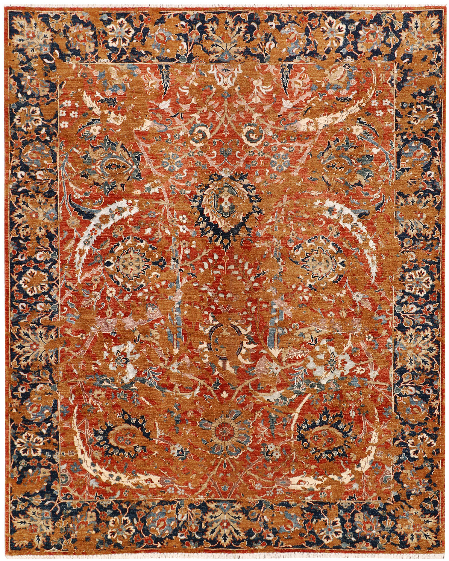 No need to travel to Afghanistan or Pakistan to buy an original handmade Ziegler rug! At our online store, you can order from our collection of exquisitely handwoven online Dark Orange 8' x 10' Ziegler rugs on sale and have them delivered anywhere in the world for free. And that too without compromising on quality.