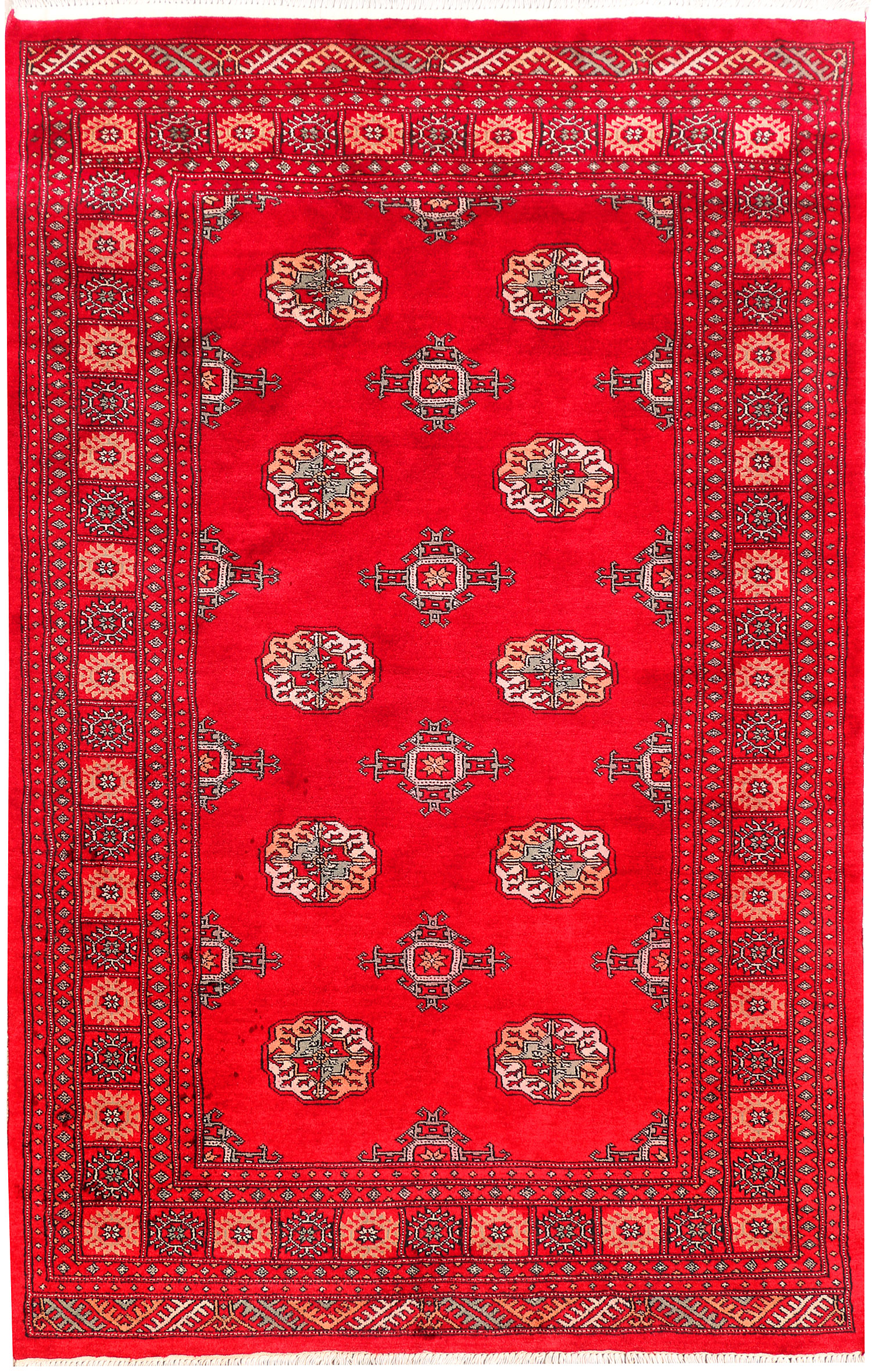 Salor Bokharas rugs are believed to be originally made by the Salor tribe who lived just north of the Northern Afghan border. These rugs are beautiful and known by red shades with a symmetrical row of octagons. Every octagon generally includes a smaller octagon or diamond within its border. The interior sides of each octagon generally feature one to three flowers.