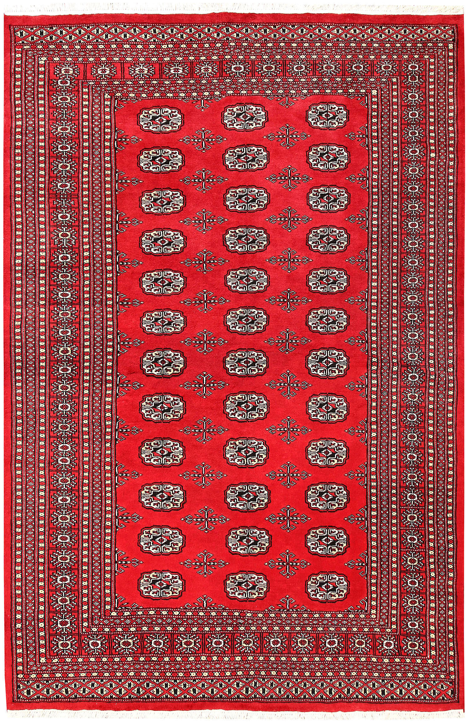 Filled with symbolic patterns and ancient designs, handmade Red Bokhara 5' 6" x 8' 6" Rectangle rugs can direct attention towards themselves like nothing else!