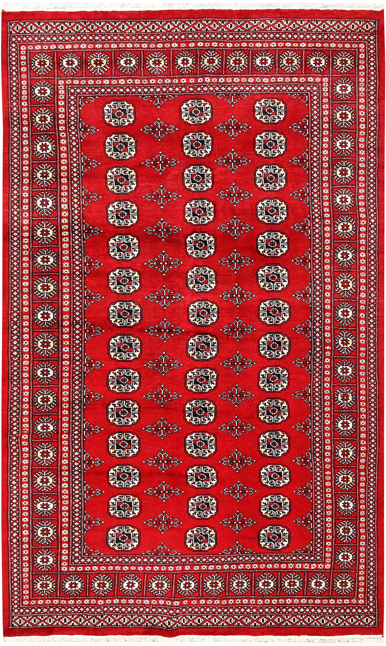 Filled with symbolic patterns and ancient designs, handmade Red Bokhara 5' 6" x 8' 6" Rectangle rugs can direct attention towards themselves like nothing else!