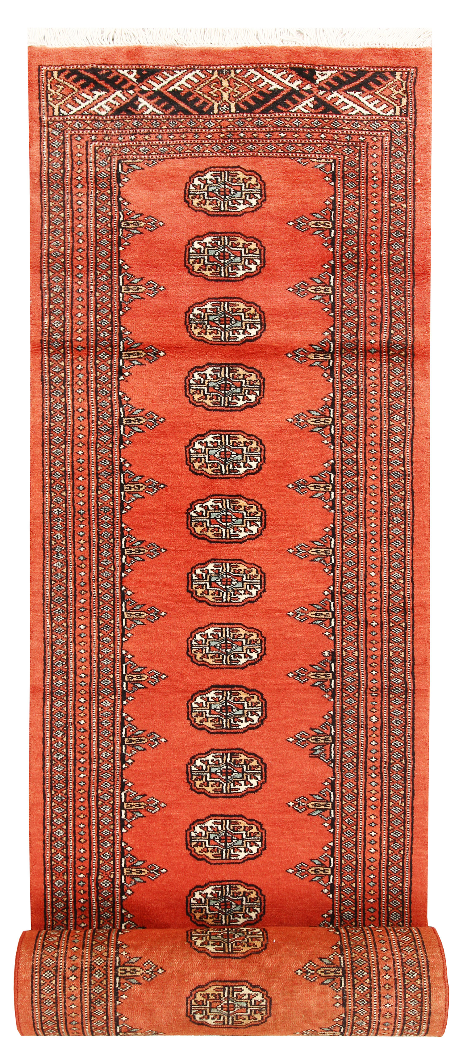 Filled with symbolic patterns and ancient designs, handmade Tomato Bokhara 2' 6" x 16' Runner rugs can direct attention towards themselves like nothing else!